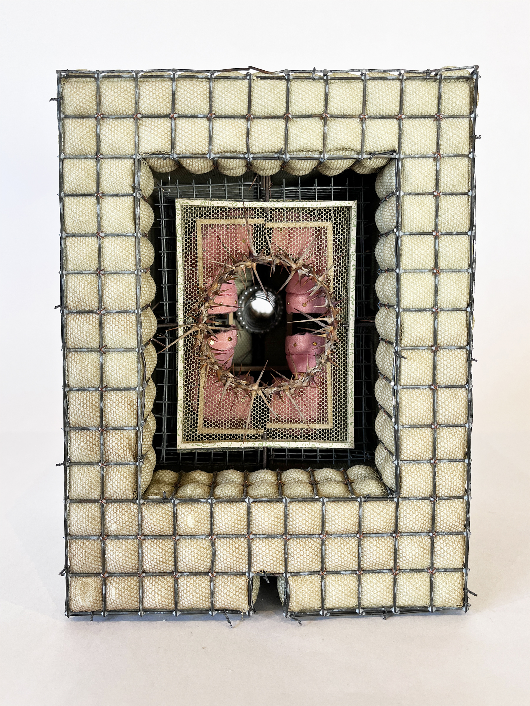 dan Waller is an artist who has spent much of his adulthood working as a building superintendent in New York City, making art in relative anonymity. His pieces have a reliquary like form, using repurposed materials to create humble objects with powerful presence. dan's pieces often include detritus pulled from New York City streets or trash from buildings for which he was caretaker. Rusted window screens, found fabric, worn book covers, thorns, steel shavings and more layer to create objects with a tactile, anachronistic vernacular.